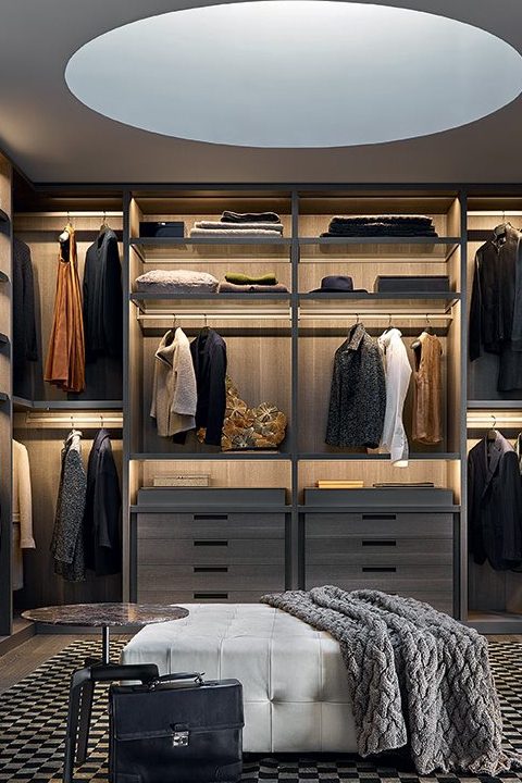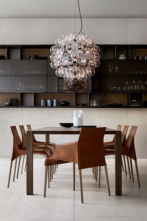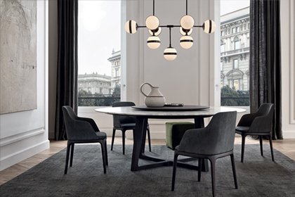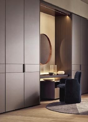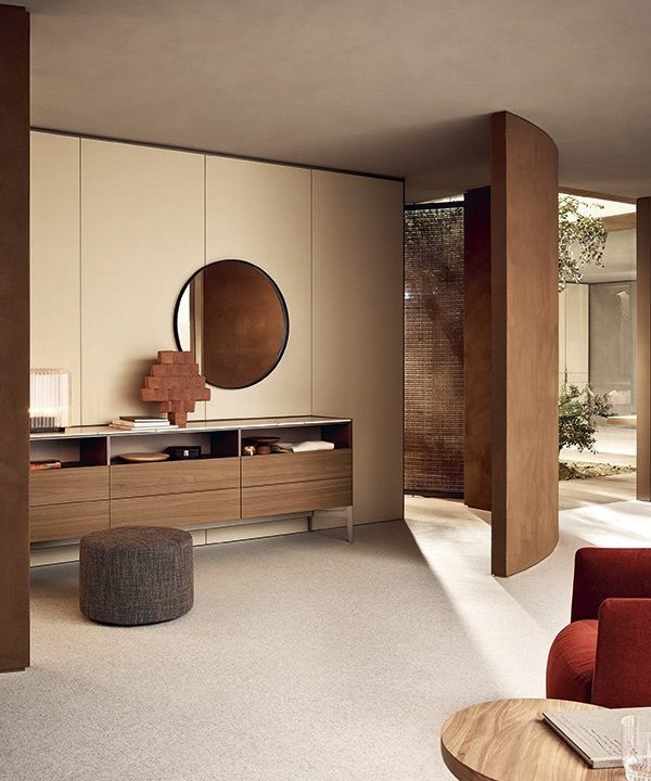 The coordinated concept environments follow one another – livingroom, dining room, kitchen, walk-in closet, bedroom – linked together by a style recognisable for its minimalistic lines and measured proportions, its harmonious shades and discreet shapes, its refined materials and precious details…
